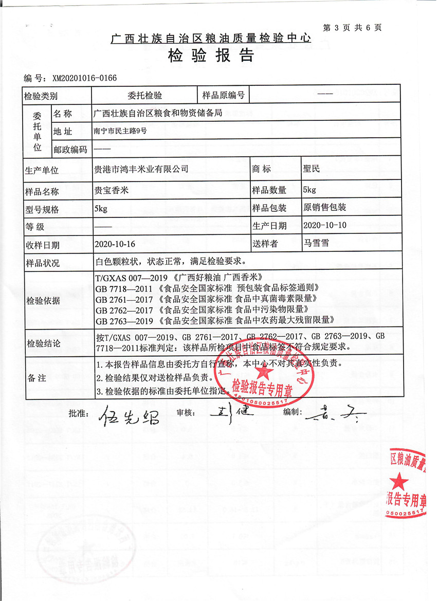 貴寶香米檢驗報告